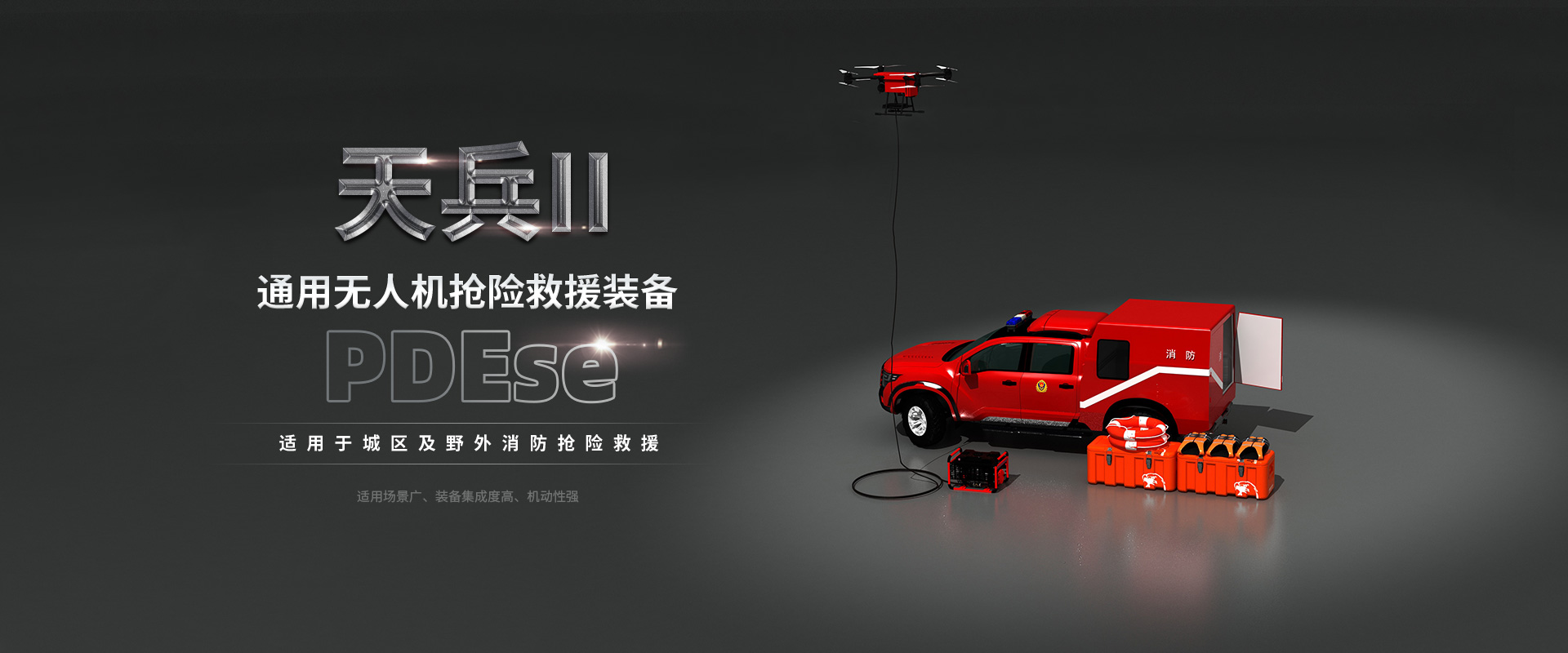 天兵Ⅱ是2020年企業承擔的消防與應急救援國家工程實驗室開放課題《通用型獵鷹無人機應急救援綜合裝備》的研發成果。以中載荷電動無人機為飛行平臺,由“隼”式電動無人機、四種標準配置模塊、搶險救援模塊、承載運輸車輛組成,適用于城區及野外消防搶險救援。